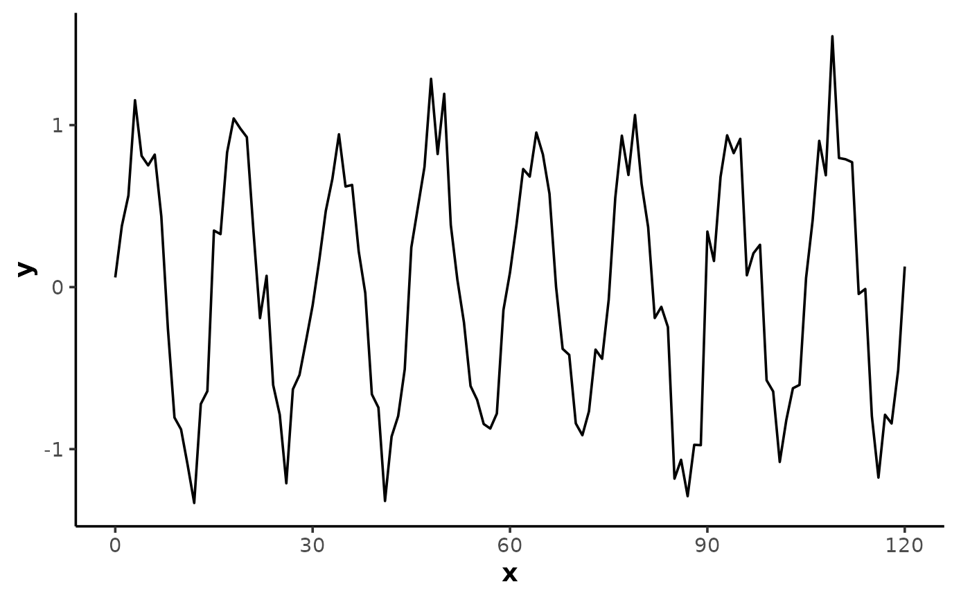 y = sin(2 * pi * x / 15) + rnorm(length(x), 0, 0.2)